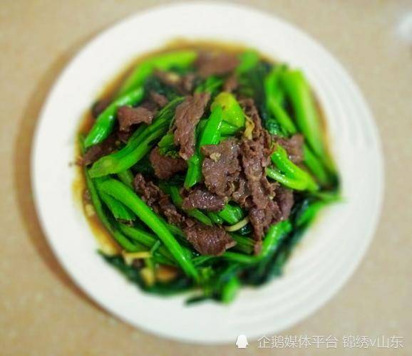 食材:牛肉、青菜、蒜末、小米辣、黑胡椒。