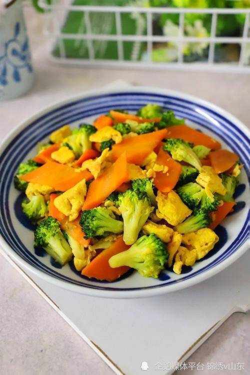 食材:西蘭花、胡蘿卜、雞蛋、蒜瓣、食鹽、生抽、黑胡椒粉