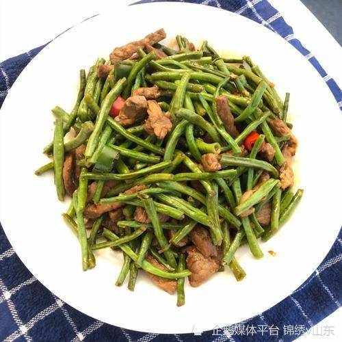 食材:豆角、牛肉、蒜末、白胡椒粉。