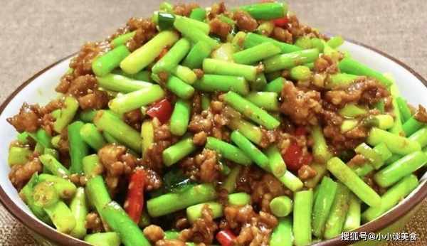 一把切成小塊的蒜瓣,200克肉末,2個紅辣椒,3瓣大蒜,1勺淀粉,1勺生抽,2勺老抽,1勺料酒,2個紅蔥頭