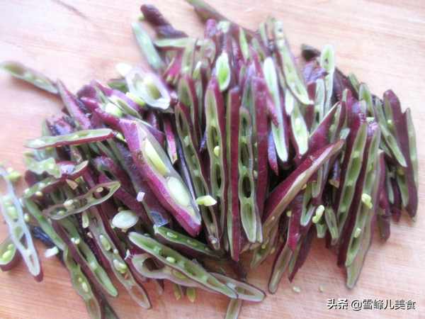 這樣的扁豆用最簡單的方法炒上一盤,清香好吃,連孩子都喜歡。紫扁豆富含磷、鈣、鋅、鐵等營養成分,還含有病毒抑制成分、有抗病毒、降血糖、增强細胞免疫功能等作用,尤適宜青少年以及老年人吃。