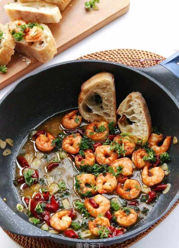 蒜香蝦在西班牙人的餐桌上很常見,用較多的橄欖油烹制出來的蝦肉香氣十足,帶點酸甜非常可口解膩,搭配當日的法棍,成就經典的地中海風味。”