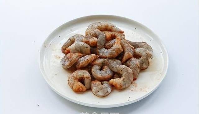 2開背蝦加鹽、黑胡椒、煙熏辣椒粉拌勻,醃五分鐘;