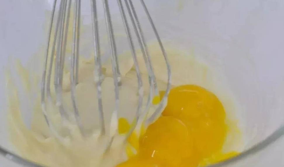 1、將雞蛋蛋清蛋黃分離,牛奶、色拉油、細砂糖、蛋黃倒入盆內,攪拌均勻。
