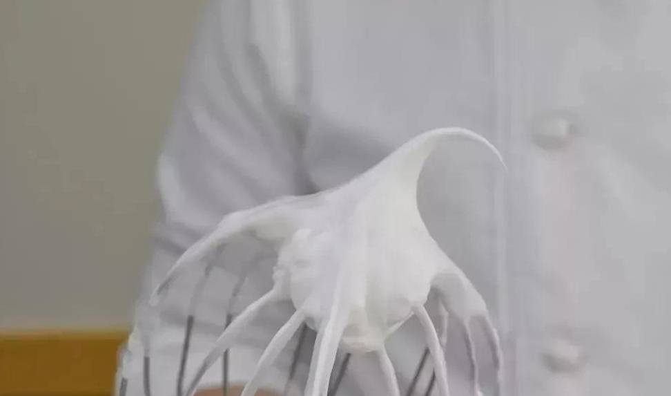 3、蛋清滴入幾滴檸檬汁,加入細砂糖後用攪拌器高速打發至八成(軟尖尾狀態)。