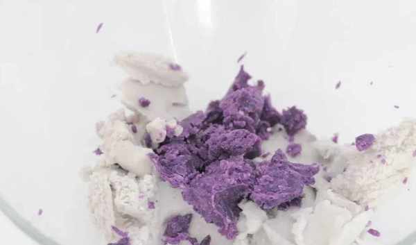 1)芋泥紫薯餡在調制時加入未打發的淡奶油會更順滑