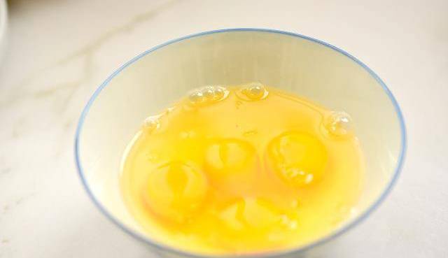 1、4個雞蛋打散,並提前把香蔥、火腿切碎備用。