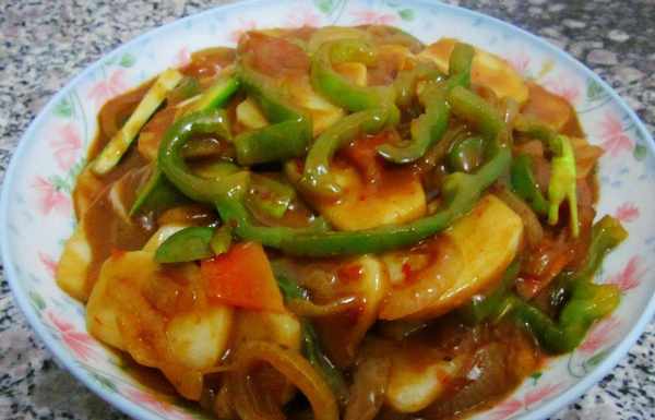 辣炒年糕:青椒切絲,胡蘿卜切片,圓蔥切絲,年糕煮好備用。鍋中放少許底油,待油熱後倒入辣醬,待醬汁起泡後放入煮好的年糕翻炒均勻。放入青椒絲、圓蔥絲、胡蘿卜片繼續翻炒,待湯汁粘稠後就好啦,你也快來試試吧!