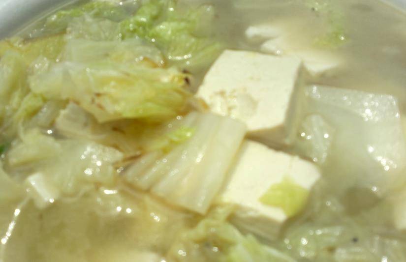 白菜豆腐粉絲湯:白菜、豆腐、薑洗凈切片,粉絲泡軟。鍋中放水,放上薑片、魚丸煮開,放上豆腐、白菜、粉絲燉制片刻。湯盆中放上香油、雞精、鹽。把燉制好的湯倒入湯盆中即可,一道美味的白菜豆腐粉絲湯就做好啦,快來嘗嘗吧。