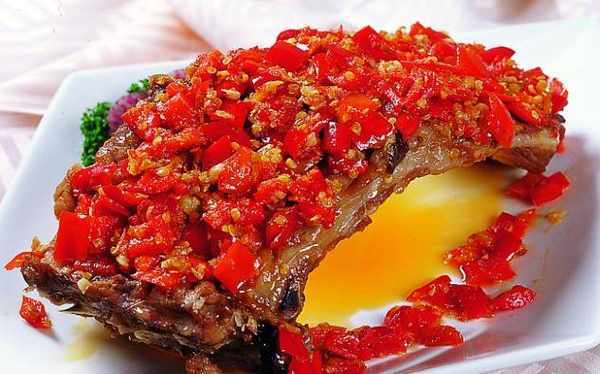 虹橋大排:排骨洗凈,入鹵水中鹵20-30分鐘至八成熟,改刀成8厘米長、5厘米寬的大塊。把自制醬料小火炒香淋在排骨上,撒上芝麻、花生米、蔥花,配上糖醋生菜即成。這道風味獨特的美食,讓人吃到停不下嘴,簡直太令人享受瞭。