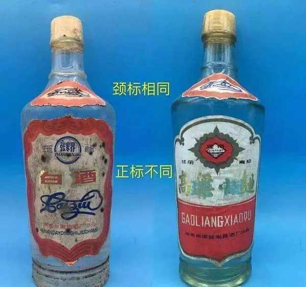 頸標明明是湖南省大庸市酒廠出品的“張傢界”牌白酒的,酒標卻是湖南國營南縣酒廠出品的“建南”牌高粱小曲,整瞭一出張冠李戴,看來造假者還得認真學習細節處理,細節決定一切啊。