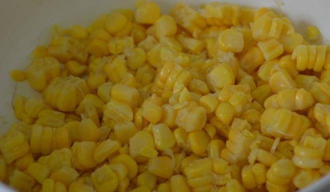 等到玉米煮好以後,我們把玉米撈出來,放涼再放涼以後,就可以把玉米粒給剝下來瞭。如果覺得不好剝的話,我們也是可以用刀貼著玉米芯兒的地方把玉米粒給切下來。