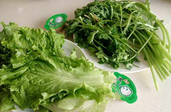 生菜,茼蒿以及香菜等蔬菜都摘除幹凈,然後拿到水池邊進行沖水,清洗幹凈。