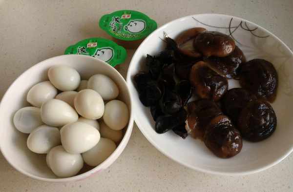 大傢先將美食的食材準備好,然後開始處理,首先是將香菇放到水盆裡面洗凈,之後放到裝有熱水的鍋裡面開火進行焯水處理,焯好以後將其撈出來過一遍涼水,接著把木耳摘洗幹凈,然後泡好,最後再把鵪鶉蛋剝掉外皮,連同上述食材放在一起等待備用。