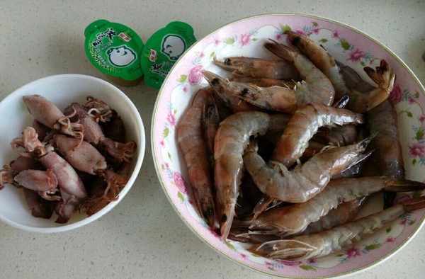 把海蝦須足去掉,然後挑去蝦線,接著放在盤子裡面,然後加入一些料酒和食鹽進去醃制,這個過程大約需要十分鐘左右,最後把墨鬥魚燙煮成熟。