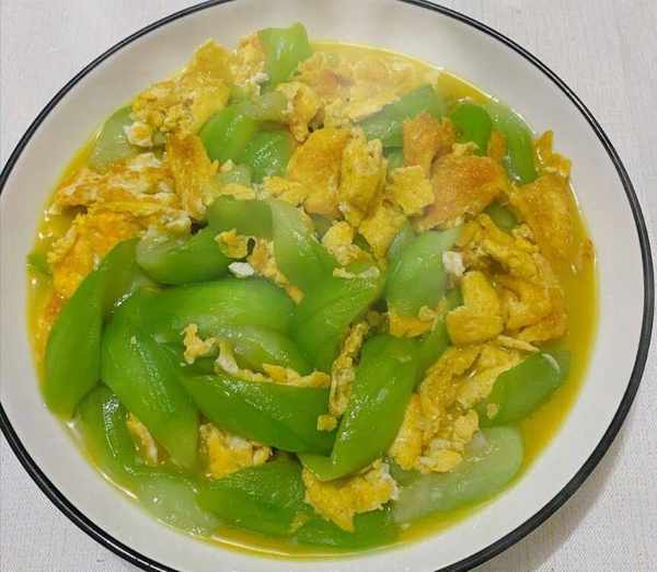 1、絲瓜去皮切塊兒備用,雞蛋打入碗中加入少量清水,少量鹽攪拌均勻備用、冷鍋熱油,油熱加入雞蛋液攤開,兩面焦黃後用鍋鏟碾碎,裝盤備用。