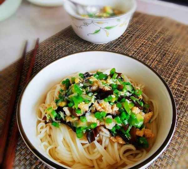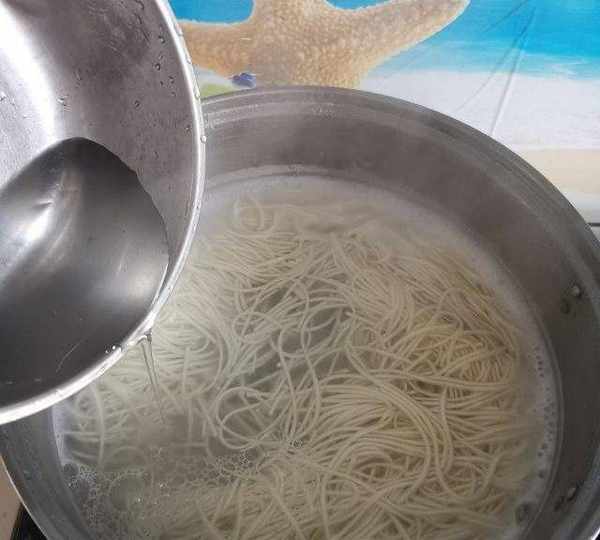 第11步、掛面煮熟,可在水開後分次加一點冷水,反復二三次,面條熟的快。