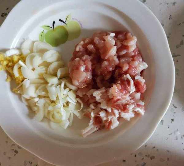 第2步、豬肉切末,蔥切蔥花,薑切末。