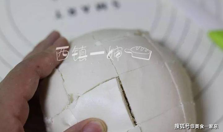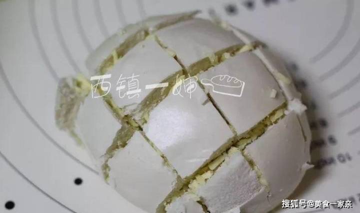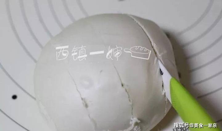 2、白饅頭先切上2-3道,別切斷,留一些底部可以連接。