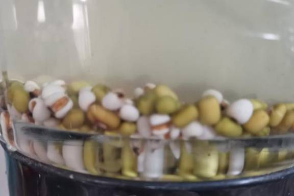 (2)將紅綠豆分別淘洗幹凈,用清水浸泡至軟。