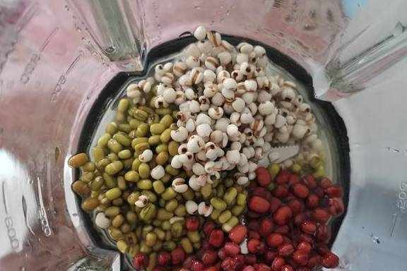 (3)將泡好的薏米和紅綠豆一同倒入豆漿機中,加入適量的清水打成豆漿即可。