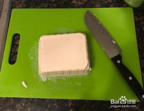 1嫩豆腐把盒子的兩角切掉一點,這樣豆腐就直接從盒子裡出來瞭