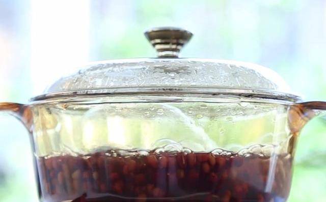 第二步:隨後把浸泡好的紅豆放入燉鍋中,加入3倍於紅豆重量的清水,先開大火煮沸,然後蓋上蓋,小火慢煮30-40分鐘,直至形成紅豆顆顆開裂的狀態。