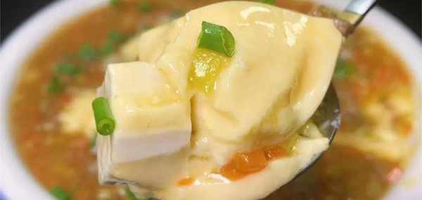11:豆腐蒸好後拿出來,淋上料汁,豆腐雞蛋羹就做好瞭,軟嫩Q彈超好吃。
