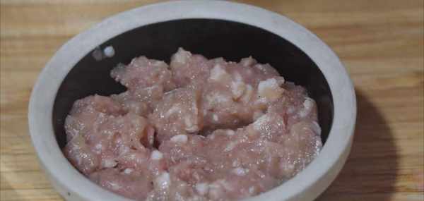 4:豬肉先切薄片,再剁成肉末,傢裡有絞肉機,可以用絞肉機操作。