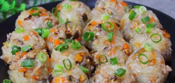 11:最後關火拿出來,撒點蔥花點綴,蘿卜丸子就做好瞭,鮮香軟糯非常美味。
