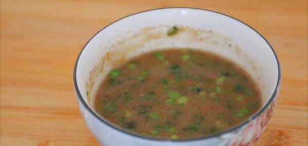 7:碗中加入蔥花、面粉、食鹽、花椒粉,澆上熱油爆香,攪拌均勻。