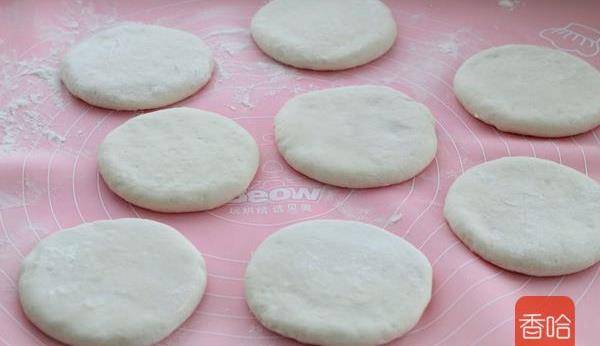7.將小面團按扁,再用搟面杖搟成餅狀,所有的面團都如此操作。