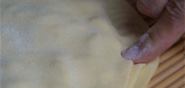 10.用搟面杖搟成圓形面片,不要搟成比鍋大的面片就可以。