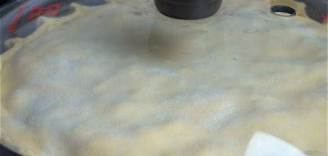 15.起鍋燒油,油熱下入餅坯。蓋上蓋子,最小火開始烙一分鐘。