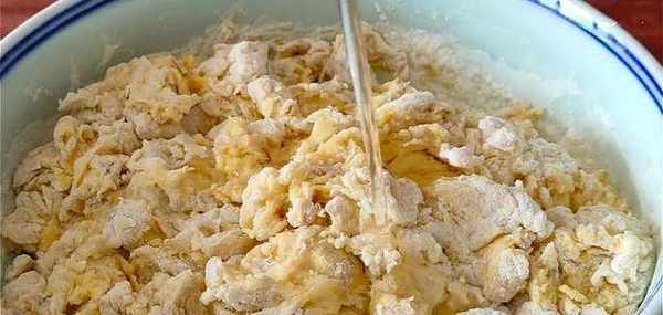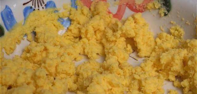 1.150克玉米面用230毫升開水燙一下,攪拌成顆粒狀。