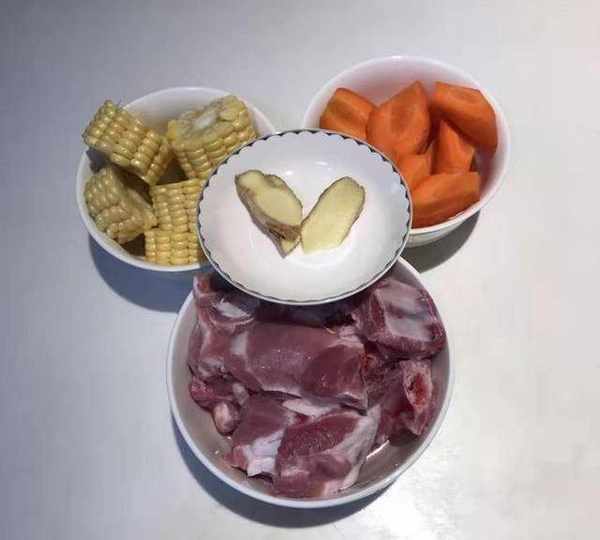 我們最好是選用新鮮的排骨邊或者大骨棒來燉,湯之所以好喝,是因為熬煮出瞭排骨的骨髓和營養。就要挑選骨頭稍大,肉質較耐煮的排骨。我之所以推薦排骨邊是因為它肉質嫩,易熟,煲湯味道很好,排骨肉也好吃。還有我們需要準備的輔料:玉米1個,蘿卜半塊,杏鮑菇3隻,生薑1塊,小蔥,鹽少許,這些備好之後放在一旁隨時準備下鍋,養生湯充滿營養,最主要的還不會長胖