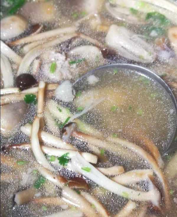 【配料】:茶樹菇、豬肉、花生油、食鹽、蔥花(香菜)、胡椒粉。