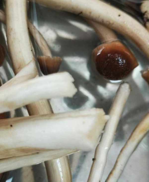 菇柄的底端,有一些黑色的東西,是培育茶樹菇的木屑,需要先將其清理幹凈。