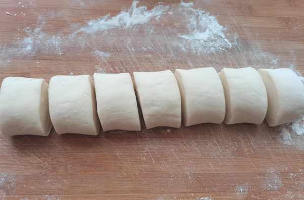 6.取其中一半,揉一揉、搓成長條,再切分成均等大小的小劑子。
