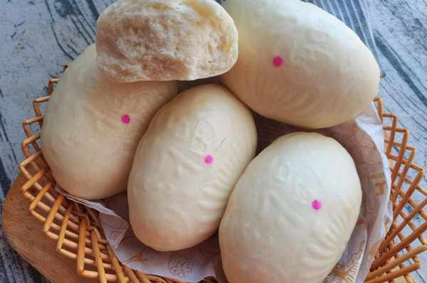 我還用筷子蘸著紅心火龍果汁給饅頭點瞭個紅點點,看上去更可愛瞭。