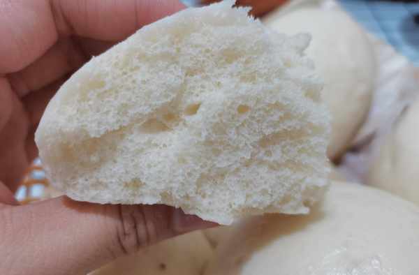 10.掰開一個看看裡面蓬松的組織,細膩均勻,一口咬下去,饅頭都不會黏在一起,而是馬上又反彈回來。