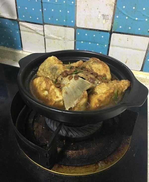 大黃花魚清洗幹凈,切成段,加料酒、適量鹽、十三香抓勻,醃制十分鐘入味找兩個小碗,分別裝面粉和雞蛋,魚先裹一層面粉再裹一層雞蛋,鍋中起油,油溫八成,下魚小火煎至兩面金黃,撈出擺到砂鍋裡。另起油鍋,下蔥花蒜片爆香然後加豆瓣醬、料酒、生抽、老抽、白糖、蠔油調汁兒,將調好的汁兒澆到魚上面將砂鍋放到爐子上小火慢慢燉,燉十五分鐘,撒上蒜末和白芝麻即可