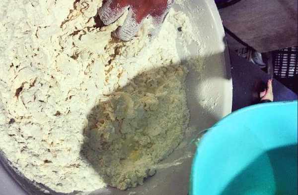 食材:面粉500克、雞蛋1個、菊花心菜、蒜瓣、蔥、鹽、黑胡椒粉