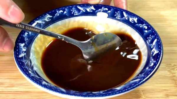 5.配菜準備好,再來提前調個料汁,小碗中加半勺的生抽、少許的蠔油,適量的食鹽,少許的雞精。小半勺的白糖,老抽少許進行調色。玉米淀粉一勺,加一大勺的清水,用勺子給它攪拌均勻,攪拌至融化,先放開一旁備用。