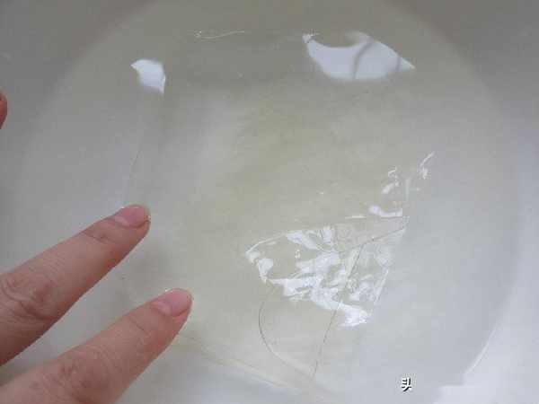 7,把魚膠片冷水泡軟,隔熱水融化,。