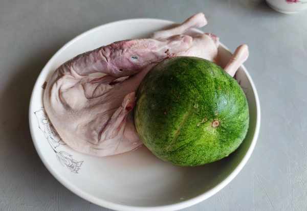 1宰幹凈的鴨子剁成小塊,放入清水中浸泡去血水,冬瓜刮去老皮後挖去瓜瓤切成小塊。