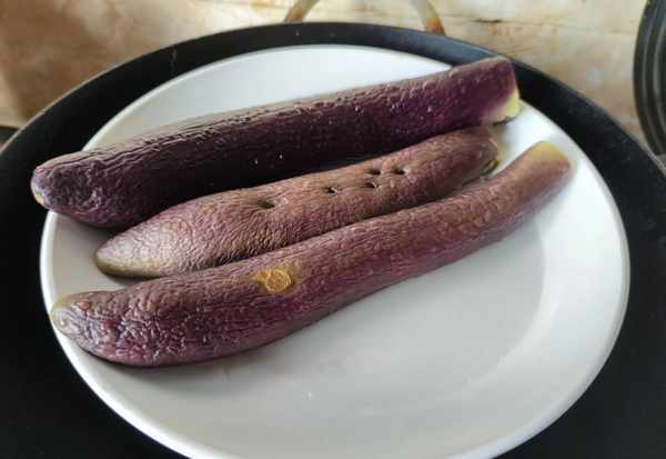 2.把洗凈的茄子入蒸鍋中,蒸至茄子軟爛後取出,晾涼後用手撕成條。