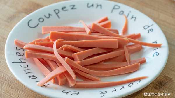 4、火腿腸1根,切小長條。