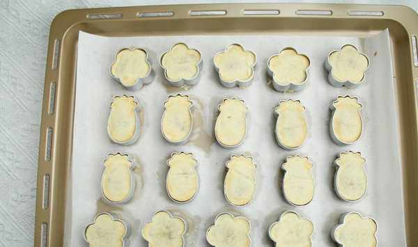 3、模具清洗幹凈,擦幹放在鋪有油紙的烤盤上。