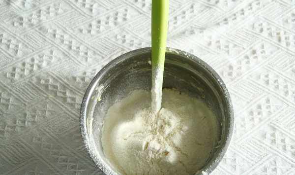 6、篩入全部粉類,切拌按壓至無幹粉。如果不好操作,可以帶手套操作,很好操作。